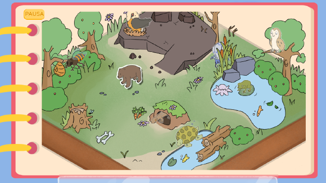 In the presented prototype, we developed the first complete level: “Animals living in Catalonia”. The player explores a natural environment where they must rescue local fauna, from the trencalòs (bearded vulture) to the escurçó (viper), while learning about them.